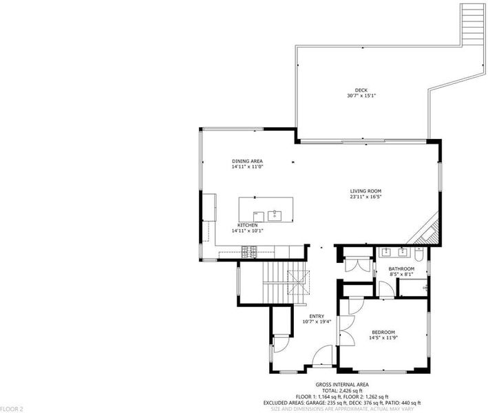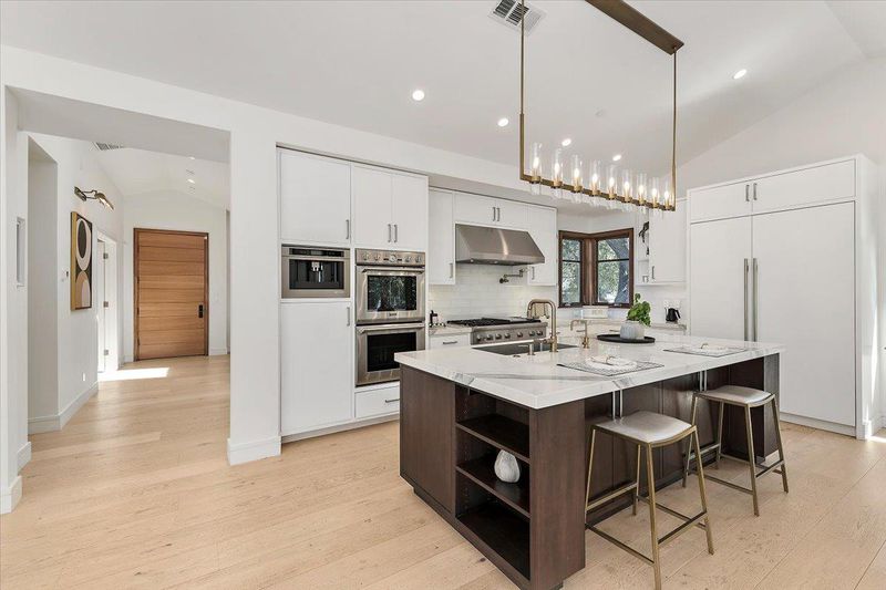 - Cooktop - Gas, Countertop - Quartz, Dishwasher, Exhaust Fan, Freezer, Hood Over Range, Island with Sink, Oven - Double, Refrigerator
