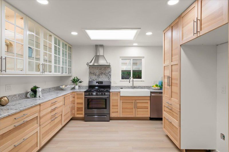 - Dishwasher, Garbage Disposal, Hood Over Range, Oven Range, Oven Range - Gas, Refrigerator, Skylight