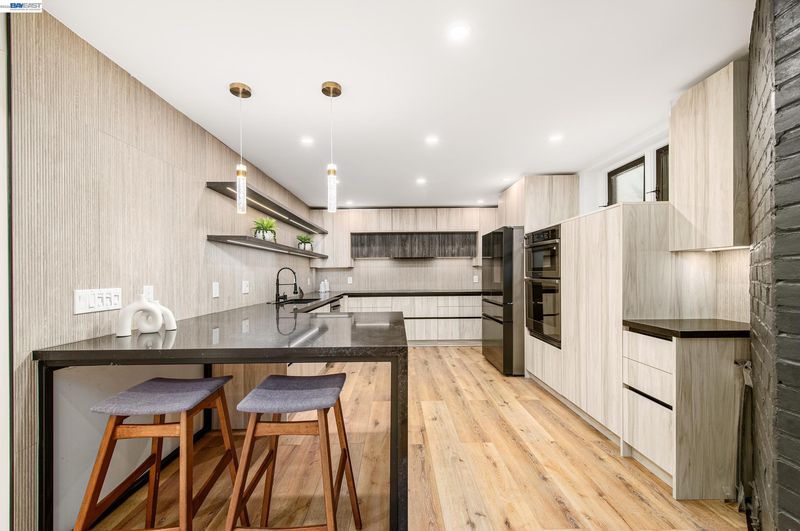 Completely updated in 2025, this artfully reimagined home in Downtown Pleasanton blends modern European design with open-concept living and high-end finishes throughout. Expanded to 3,440 sq ft, it features a custom kitchen with quartz waterfall island, sleek black appliances, and a spacious primary suite with soaring ceilings, linear fireplace, and French doors to the backyard. Two additional bedrooms share a stylish full bath, and a spacious utility room sits just past the kitchen. The finished lower level, built to current ADU specs, includes a full kitchen, dining and living areas, two bedrooms, a full bath, a private entrance, and interior access—ideal for multi-generational living, long-term guests, or investment potential. Separate electrical meters and shared HVAC system provide flexibility. The drought-tolerant front and back yards include a three-hole putting green and space to relax or entertain. Detached two-car garage with modern glass door and epoxy floors can serve as a garage or versatile flex space, perfect for a game room, studio or workshop. All just blocks from downtown Pleasanton. Open House Saturday/Sunday March 28-29 2-4pm.