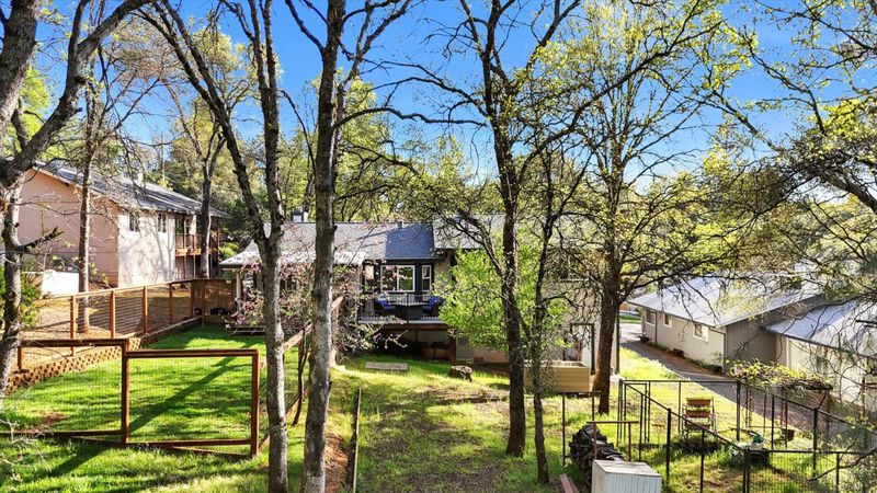 Welcome to easy living in the sought-after Lake of the Pines community! Set on a private 1/3-acre lot. Set back away from the road adds to the feeling of privacy from cars and surrounding homes alike. This well cared for home offers a peaceful backyard with a level and small fenced lawn area looking out to your own plum trees, oak trees in a park like setting, and space for a garden or simply enjoying the outdoors. The light-filled interior features 3 bedrooms and 2 full baths, with a comfortable, user-friendly layout and convenient access from the driveway to the kitchen and back deck. Enjoy morning coffee on the front Trex deck or unwind on the covered back Trex deck overlooking your private yard. The oversized 38-foot garage is a rare bonus with plenty of room for your car, boat, golf cart, and more. Plus, the laundry room in the garage has a handy half bath. Life at Lake of the Pines means resort-style amenities right at your doorstep: a private lake for swimming, stand-up paddle boarding, and fishing; pool, pickleball, bocce, golf, parks, and much more. A perfect fit for all ages and a lifestyle you'll love coming home to.