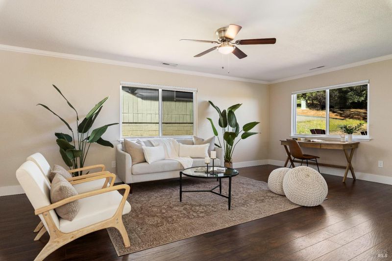 Super cute & completely TURN-KEY home in Kelseyville Riviera! One story 2bed/2bath with a great layout, surprisingly large bedrooms and open kitchen/living area. Like new inside and out with beautiful fresh renovations. New windows, lighting fixtures, hardwood & tile flooring, interior/exterior paint, all new kitchen cabinets, granite counters, stainless appliances & tile backsplash up to ceiling. Both bathrooms renovated with custom high end tile work, nice vanities and new plumbing fixtures. Central HVAC, as well as a new wood burning stove. Fantastic backyard, fully fenced & designed to be low maintenance with easy to clean concrete patios, raised garden beds, and hardscaped. Even includes a hot tub & a brand new large Tuff Shed out back for added storage! Nice level parcel with all useable yard, backs up to open space so no neighbors in the back. Attached 2 car garage. Great option for all buyers & most all financing options too!