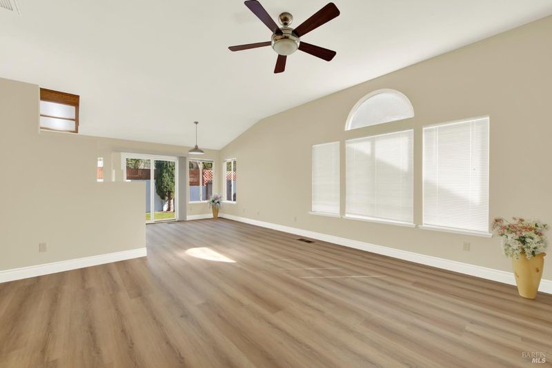 Beautifully maintained single-story home located in a charming, established Suisun City neighborhood. Step inside to a freshly painted interior featuring brand-new luxury vinyl flooring and updated baseboards throughout. The kitchen is equipped with stainless steel appliances, including a modern induction range. The home offers an excellent floor plan with an open, spacious living and dining area, while the bedrooms are thoughtfully positioned for privacy. Additional highlights include a newer HVAC system and roof, cedar-lined closets, and a whole house fan for added comfort. Two sliding doors provide easy access to the backyard, where you'll find beautifully landscaped, low-maintenance yards perfect for relaxing or entertaining. The garage features a convenient workstation and built-in cabinetry for extra storage. This move-in-ready home showcases true pride of ownership and is ideally situated near parks, schools, shopping, and freeway access.