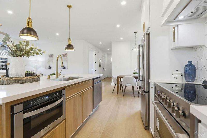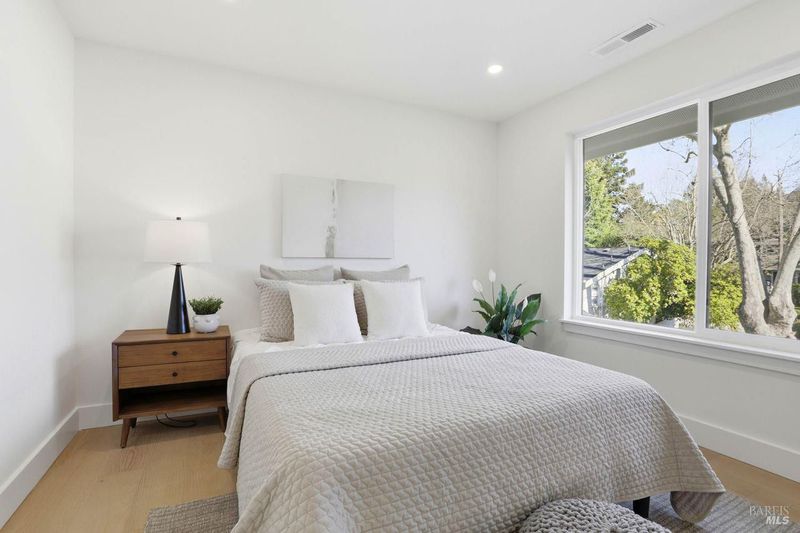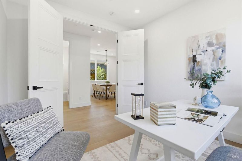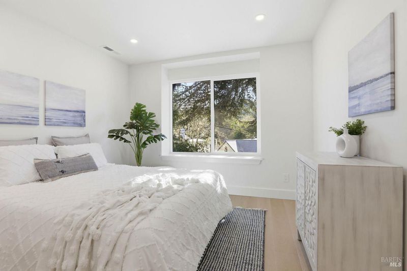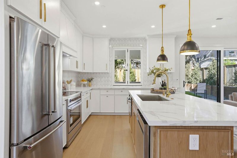 Rare, newly constructed contemporary craftsman nestled in the beloved Calumet Park neighborhood. This nearly 2000 square foot, 3 Bedroom/2.5 bath plus office home is thoughtfully designed blending comfort, function and intuitive design. The open concept main level offers seamless indoor-outdoor living. A spacious living room with fireplace flows to the dining area and chef's kitchen with a large island, quartz counters, custom cabinetry, premium appliances including a wine refrigerator. A pass-through window and sliding glass doors to a shiplap covered porch overlooking the private tranquil backyard, make the home ideal for alfresco dining. The main level also includes a sunny office, half bath, attached garage and closet/storage space. Upstairs, the primary suite offers a spa inspired bath, expansive walk in closet and serene private deck to enjoy morning coffee. Two additional bedrooms, bath and laundry room complete this floor. Additional features include wide plank hardwood floors, 50-year steel roof with solar panels. This fully electric home sits on a fully landscaped level lot. Ideally located with easy access to the wide variety of restaurants, shops and entertainment venues of San Anselmo and Fairfax, moments from the area's award-winning schools and magnificent trails of the area. This newly built home is a must see!