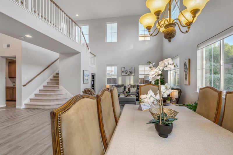 No HOA! Welcome to 310 Ashlee Avenue Mountain House where elegance and tranquility meet. At the heart of this stunning home lies a Zen-inspired courtyard with lush palms a soothing water feature and string lighting that turns evenings into something magical. Step inside to find luxury vinyl plank flooring fresh interior and exterior paint and a custom sliding barn door creating a peaceful home office retreat. The grand living and dining area boast soaring ceilings and abundant natural light while the gourmet kitchen offers refinished cabinetry modern hardware, and stainless steel appliances opening to a cozy family room ideal for relaxing or entertaining. A full bedroom and bath on the main level offer convenience for guests or multi-generational living. Upstairs a bridge walkway overlooks the open living space and leads to two guest bedrooms, a full bath, and a luxurious primary suite with dual sinks, soaking tub separate shower, and walk-in closet. Set on a spacious 8,500 sqft ± sf lot with no rear neighbors, the backyard features a lawn and patio ideal for gatherings or quiet reflection. The single-car garage has been beautifully converted into an office or mini theatre, while the main two-car garage remains intact. Solar panels add efficiency and value.