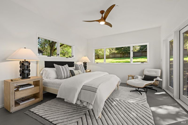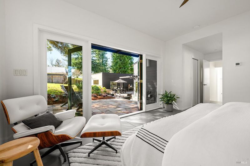 Ahhh.the splendor on First Street. This most sought after location is the quintessential charm of Sebastopol living pairing a more rural country lifestyle with an in town location. Mature trees and natural gardens, vintage homes, new homes and larger parcels characterize this sustainable enclave that's just a quick stroll to restaurants, Ives pool, the library, coffee houses, shopping. On a near acre of really, really pretty land, this modern eco-friendly home, built in 2011 is a seamless integration of indoor-outdoor living that creates such a restful mood. It's defining expression is the central patio which viewed from the interior walls of glass and french doors blurs the line between nature and home. With tall ceilings, the upper bank of windows on this single level home calls in blue skies and starlit scenes, tree tops, an abundance of light! The high performance building envelope features structural insulated panels, radiant heated floors, highly efficient Morso wood burning stove, solar, EV charging setup and an exterior wrapped in cedar and stucco finish. A separate and large studio/office space, beyond the 4 bedrooms, offers expanded indoor uses. Oriented to the patio, it measures 440 square feet. The outdoors combine full sun with the shade of a magnificent old oak tree, some original storage structures remain giving nod to earlier dwellers. A prepared garden is fenced and on drip.There's plenty of room for a pool site, extended gardens, a 2nd unit. Freshly painted interior and exterior, front stucco. Everybody wants to be on First St, maybe you do too! Truly exceptional offering.