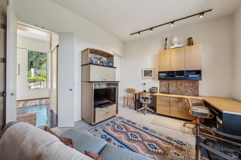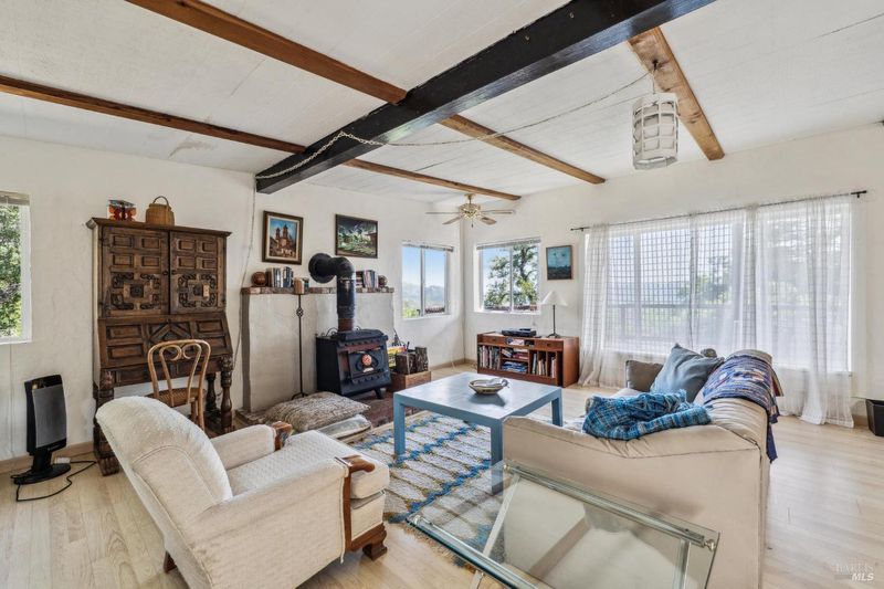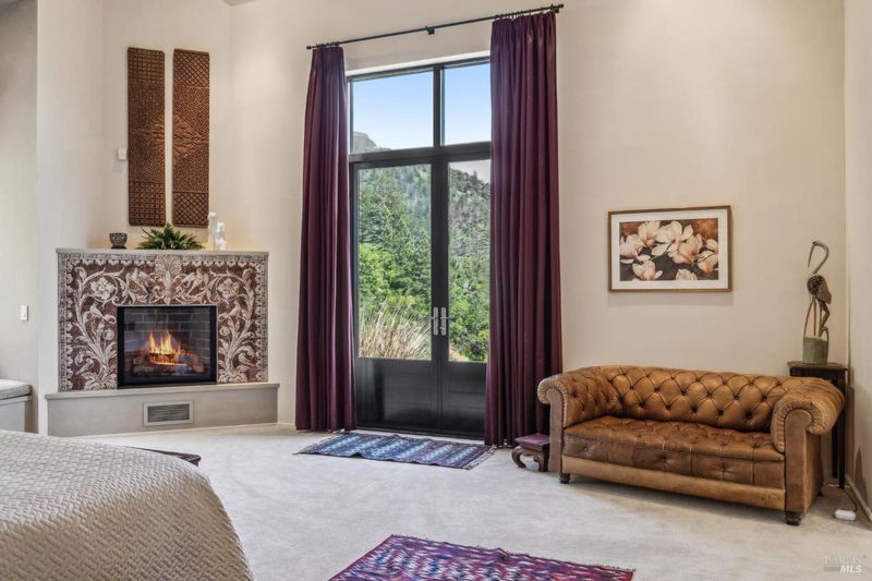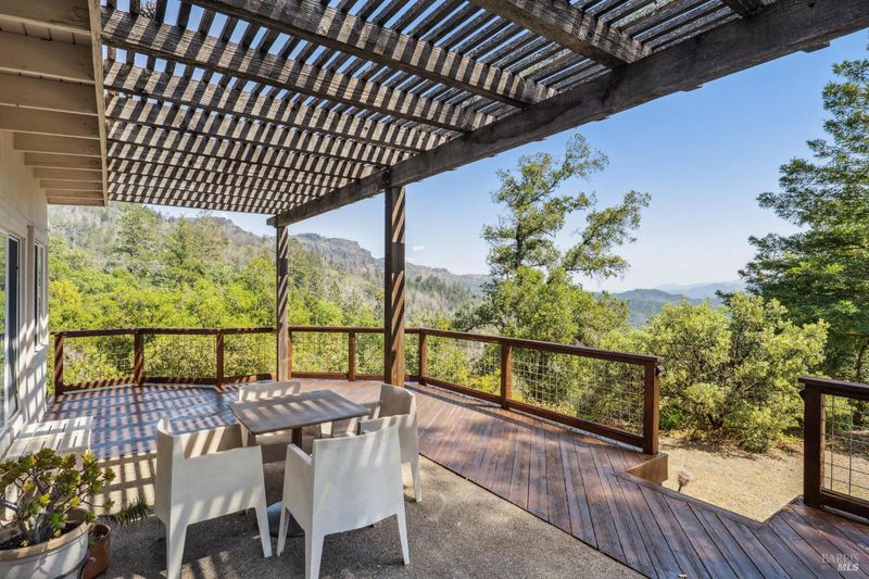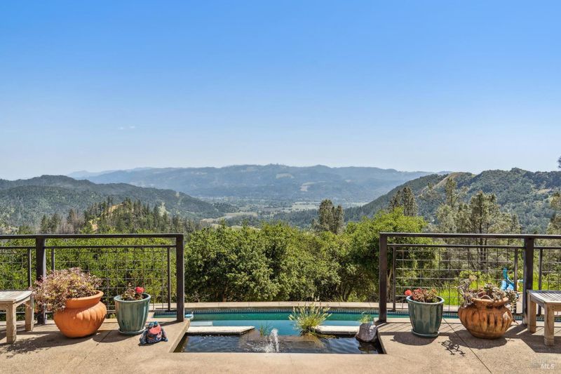 Experience this striking 5-acre architectural estate designed by renowned architect Nan Hearst. The 3,600 sq. ft. residence showcases a distinctive half-circle design positioned to capture sweeping views over Calistoga, surrounding vineyards, and the Napa Valley beyond. Expansive walls of glass fill the home with natural light and frame the dramatic scenery. Inside are three spacious bedrooms and two baths, with soaring ceilings, wood and concrete floors, and multiple fireplaces creating warmth and character. The chef's kitchen includes a premium gas range, Sub-Zero refrigerator, and a scenic balcony overlooking the valley. Outdoor living centers around a sparkling pool with a dedicated bath, creating a private resort-style setting. The property is thoughtfully equipped with solar power, Tesla Powerwall, backup generator, a 5,000-gallon water tank, metal roof with fire sprinklers, carport, and an on-site fire hydrant. An 1,100 sq. ft. ADU offers two bedrooms, two baths, partial kitchen, fireplace, laundry, and an attached garageideal for guests or rental income. Just 10 minutes to Calistoga, this rare Napa Valley property combines architecture, sustainability, and breathtaking vineyard views.