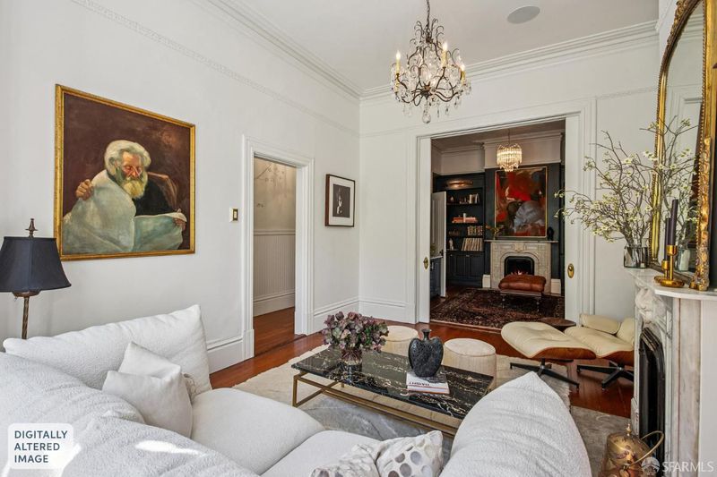 Full-floor 1884 “Gilmour House” Victorian flat in the heart of Hayes Valley featuring soaring 13’ ceilings, dual parlors with working gas fireplaces, and an exclusive rear deck in an intimate three-residence building. Rich with original character, the home showcases beautifully preserved Douglas Fir floors, elegant pocket doors, and grand proportions rarely found in modern construction. The flexible layout includes three bedrooms, two renovated bathrooms, and a spacious chef’s kitchen with Viking stovetop that flows naturally to a private outdoor retreat—creating a perfect balance of historic San Francisco architecture and contemporary livability.