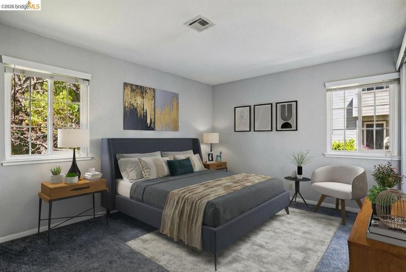 Welcome Home to Canyon Oaks Drive, a coveted TOP FLOOR condo in the gated Shadow Woods community of Oakland in the Sequoia Heights neighborhood. Offering ~1,123 square feet of thoughtfully designed living space, this residence features two generously sized ensuite bedrooms, each with ample closet space, including two large walk-in closets. The open-concept layout is enhanced by high ceilings and a cozy fireplace that creates a warm, inviting focal point in the living area. A dedicated dining nook connects seamlessly to the kitchen, while the expansive private balcony extends the living space outdoors. The kitchen is appointed with a new electric stove-glass top, stainless steel dishwasher, and refrigerator. Just off the kitchen, a separate laundry room includes a washer and dryer with storage for added convenience. A newer water heater provides additional efficiency and peace of mind. The unit also comes with two deeded parking spaces, a valuable and hard-to-find feature. Shadow Woods is a secure, gated HOA community known for its resort-style amenities, including a swimming pool, spa, sauna, fitness center, tennis court, playground, and extremely well-maintained grounds. Ideally located near parks, scenic trails, shopping, and convenient commuter access to the 580.