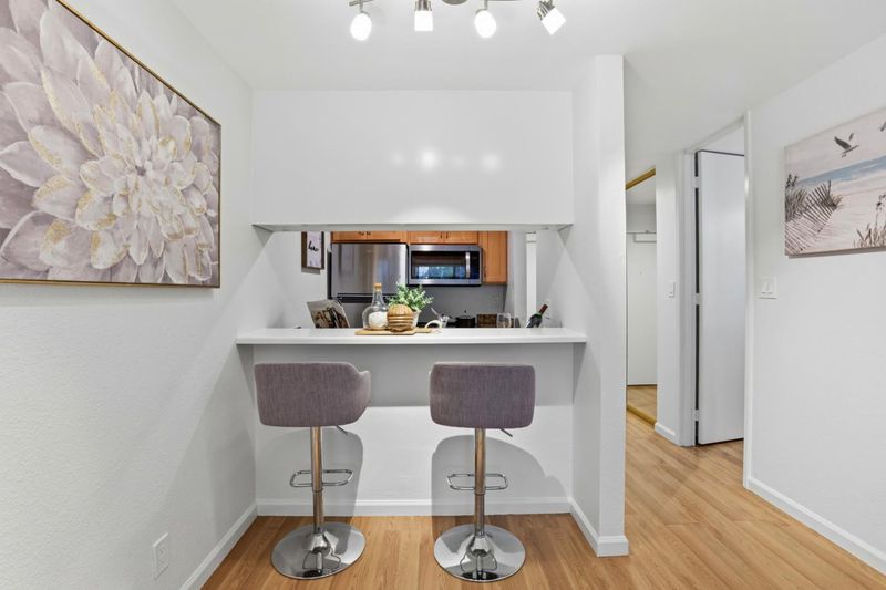 Studio condo located in the resort-style Shelter Creek community in San Bruno, surrounded by lush gardens and tranquil water features. The ground floor unit features granite kitchen countertops, newer appliances, engineered laminate flooring, a freshly painted interior, an updated bathroom, and a large walk-in closet. Enjoy a private patio with peaceful garden views, with the clubhouse conveniently located just outside the side door, providing quick access to the fitness center and community amenities. Shelter Creek offers two outdoor pools, an indoor pool, tennis courts, walking paths, and beautifully landscaped grounds. HOA dues are $515/month and include water, garbage, solar energy benefits, amenities, and one assigned outdoor parking space. Convenient mid-Peninsula location close to SFO, BART, Caltrain, shopping, dining, and major freeways.