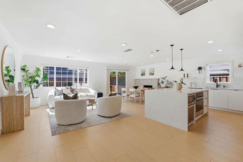 Modern Sophistication Meets Curated Comfort. Nestled in a premier Campbell cul-de-sac, this masterfully reimagined residence is a testament to Scandi-inspired minimalism. Natural light dances across expansive wide-plank flooring, illuminating an open-concept sanctuary defined by crisp moldings and recessed lighting. The homes pulse is the gourmet kitchen, where a dramatic waterfall quartz island serves as a centerpiece, flanked by high-end appliances and custom cabinetry. Beyond sliding glass doors lies a spectacular 220-sq-ft heated pavilionan architectural triumph with vaulted wood ceilings and skylights overlooking a newly manicured lawn. From designer bathrooms to the versatile finished garage and proximity to award-winning Forest Hill Elementary, every detail is polished to perfection. Perfectly positioned just 15-20 minutes from Apple, Google, Nvidia, Netflix, and AMD, this is a rare retreat for the discerning few.