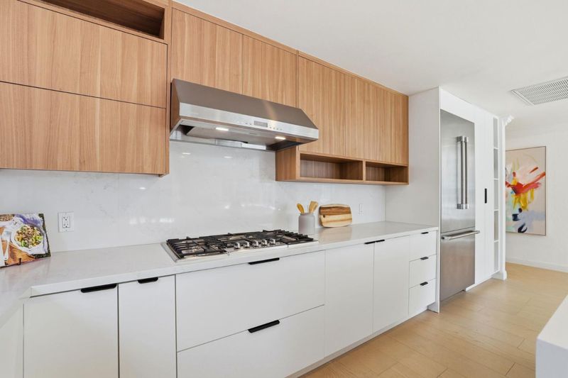 - Dishwasher, Cooktop - Gas, Garbage Disposal, Island, Microwave, Countertop - Quartz, Exhaust Fan, Wine Refrigerator, Refrigerator, Oven - Electric