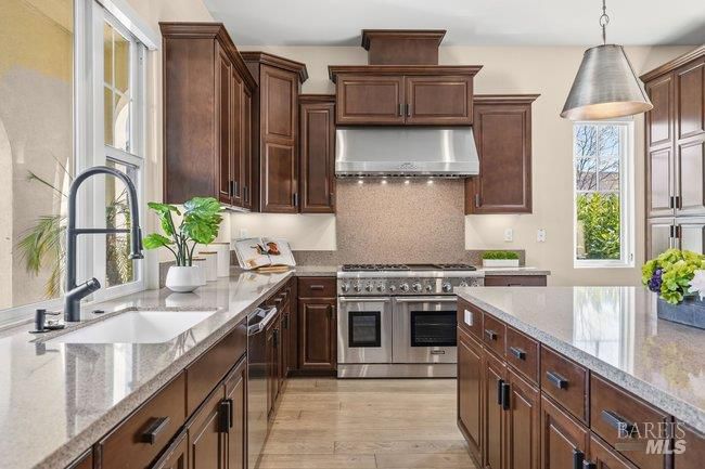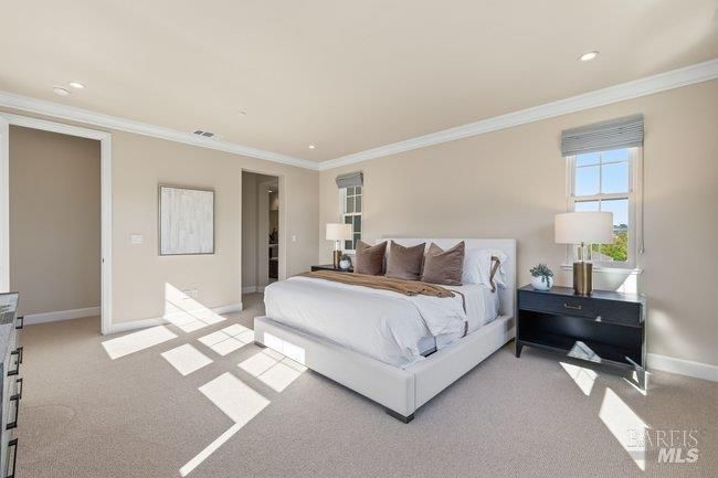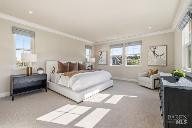 Located in a desirable enclave moments from downtown Larkspur, this thoughtfully built Santa Barbara–inspired home blends timeless architecture with modern comfort. Features include wide-plank floors, 2 fireplaces, and custom built-ins. Positioned on a corner lot, the home enjoys an enhanced sense of openness. Expansive main living areas with large sliding doors create seamless indoor/outdoor flow. The gourmet kitchen offers granite counters and backsplash, abundant cabinetry, an enormous center island, and stainless appliances. A main-level guest suite provides flexibility for visitors or work-from-home needs. Upstairs are three en-suite bedrooms, including a spacious primary suite with views of Mt Tam, soaking tub, dual vanities, walk-in shower, and generous closet space. A private courtyard connects the main residence to a stylish studio above the garage with full kitchen and bath—ideal for guests, office, or creative use. Close to Piper Park, Magnolia Avenue shops and dining, the Larkspur Ferry, and Highway 101.