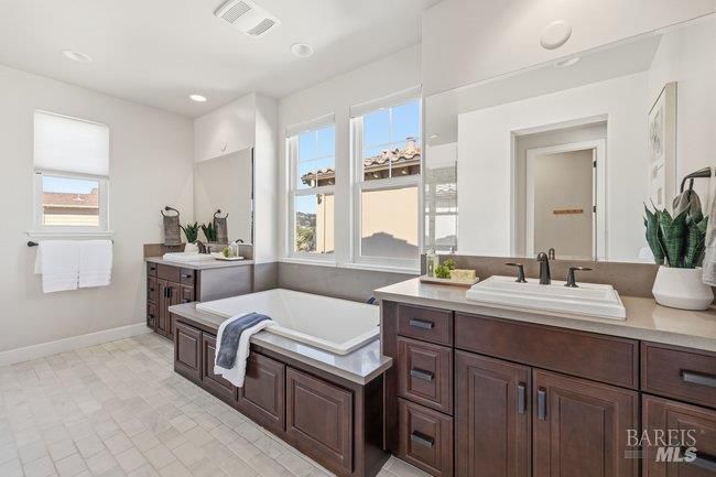 - Dual Flush Toilet, Quartz, Shower Stall(s), Soaking Tub, Stone, Tile