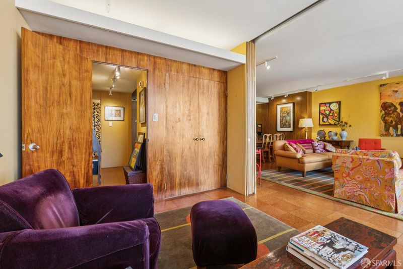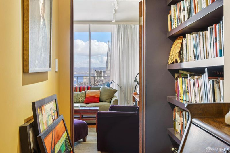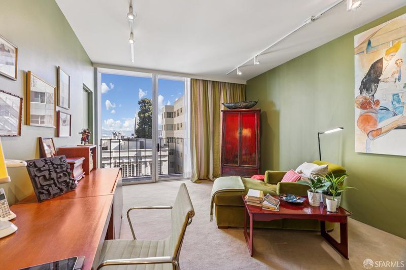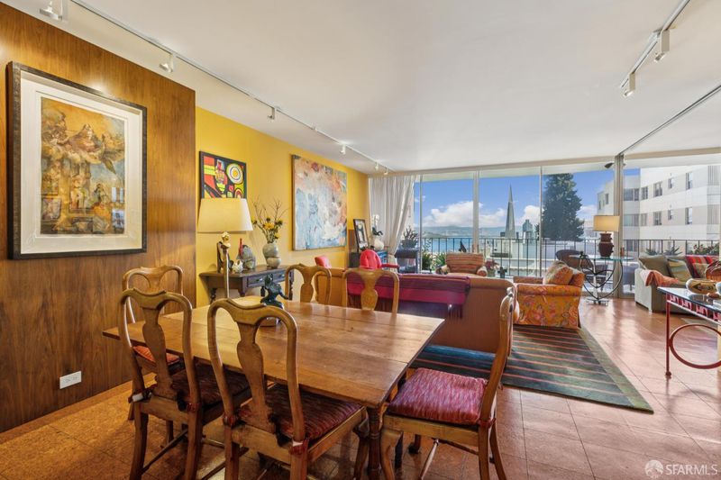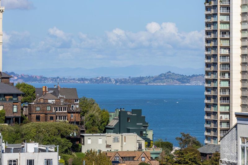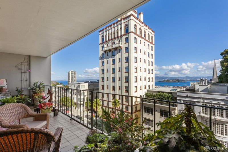 Perched atop Nob Hill, this light-filled residence at The Comstock captures quintessential San Francisco living with terrific Downtown and Bay Bridge views. A large deck off the living room and bedroom provides seamless indoor-outdoor living. The flexible floor plan includes a spacious den with sliding doors, ideal as a second bedroom or office, along with a second full bath for guests. The open layout connects the formal dining area and living room, offering great light and multiple layout options. Enjoy the chic Mad Men vibe with original wood paneling and mid century charm. Located in one of Nob Hill's premier full-service buildings, residents enjoy 24-hour doorman service, an on-site manager, guest parking, and beautifully maintained common areas. Enjoy close proximity to Huntington Park, Le Beau market and easy walk to Polk Street or North Beach.