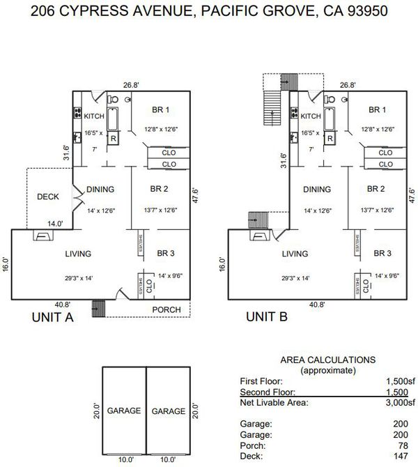 Located in the heart of downtown Pacific Grove, 206 Cypress Avenue offers a rare opportunity to own a spacious duplex just moments from Lovers Point Beach. Each unit features 3 bedrooms, 1 bathroom, and 1,500 sq ft of light-filled living space. The lower unit showcases updated LVP flooring, high ceilings, and a classic Bay Area apartment feel, with a generous dining area and French doors opening to a private deck. Upper unit has the same layout as the bottom unit and includes peeks of ocean views(See Floor Plan in Photos). Both units have their own one-car garage and share a bright, welcoming ambiance. Whether you're looking for a good investment or a live-in rental opportunity, this centrally located duplex delivers both allure and versatility.