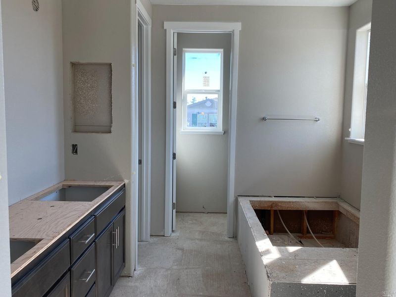 - Double Sinks, Shower Stall(s), Soaking Tub, Tile, Walk-In Closet, Window