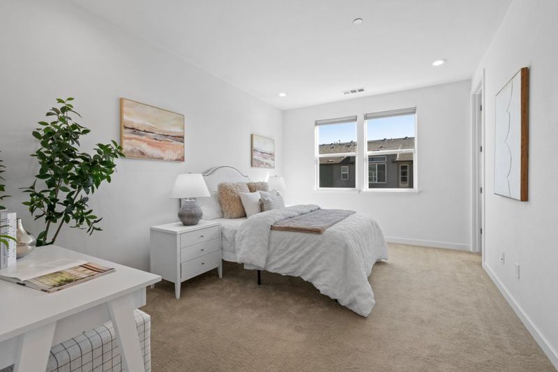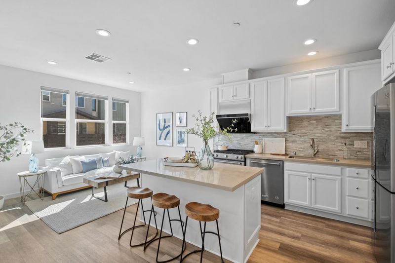 *6-Year-New Townhome Blending Modern Design, Energy Efficiency & Prime Silicon Valley Location. This beautifully upgraded home offers a bright, open-concept layout where the spacious living room flows seamlessly into the dining area and gourmet kitchen, extending to a private patio. The kitchen features quartz countertops, a designer backsplash, a large island, stainless steel appliances, and custom white maple cabinetry. *A desirable bedroom and full bath on the main living level provides flexibility for guests, a home office, or multigenerational living. The primary suite features an ensuite bath and a walk-in closet, creating a comfortable private retreat. Enjoy premium modern upgrades including recessed lighting, central A/C & heating, tankless water heater with water softener & purification system, paid-off solar for significant electricity savings, EV charger outlet, and an attached 2-car garage. *Top-rated schools, including Northwood Elem (9/10) and Morrill Middle School (8/10, 2024 California Distinguished School), plus renowned private options like Merryhill, Stratford, and Challenger. Walk to Milpitas BART with quick access to Highways 880, 237, and 680 for an easy commute to major tech employers. Close to Great Mall, Trader Joes, H Mart, Costco, 99 Ranch, and more.