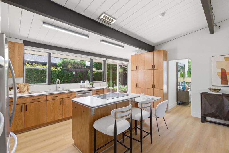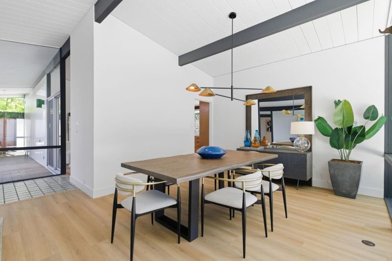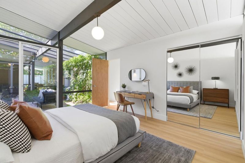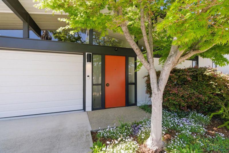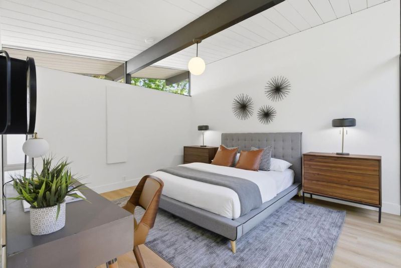 Original Joseph Eichler / Original Owner Debut tucked on a quiet street in coveted Serra Park, this mint-condition Eichler honors everything mid-century modern lovers crave: huge lot, clean lines, radiant flrs, walls of glass & signature open-air atrium blurring indoor/outdoor living. Claude Oakland designed home features post-&-beam architecture, tongue-&-groove ceilings w/exposed beams, iconic globe lighting & original brick fireplace. Fresh int/ext paint, new wide-plank flrs & updated baths blend preserved elements w/modern comfort. Light-filled living rm, sep dining & chef-inspired kitchen w/center island, pantry, generous storage & adj laundry for full-size W/D. Flexible bonus/office rooms, primary suite w/cedar-lined walk-in, yard access & spa-inspired bath w/new stone cntrs, updated vanity, backlit mirror, designer lights & frameless glass shower. Outdoor pool oasis w/electric auto cover, built-in spa, privacy fencing, mature fruit trees & curated landscaping perfect for entertaining. 2-car garage, expansive patios & multiple seating areas enhance seamless indoor/outdoor flow. Top-rated West Valley Elem & Homestead High, mins to DT Sunnyvale, Caltrain & ~4 mi to Apple Park. Rare opportunity to own a preserved, thoughtfully updated Eichler w/ timeless mid-century appeal.