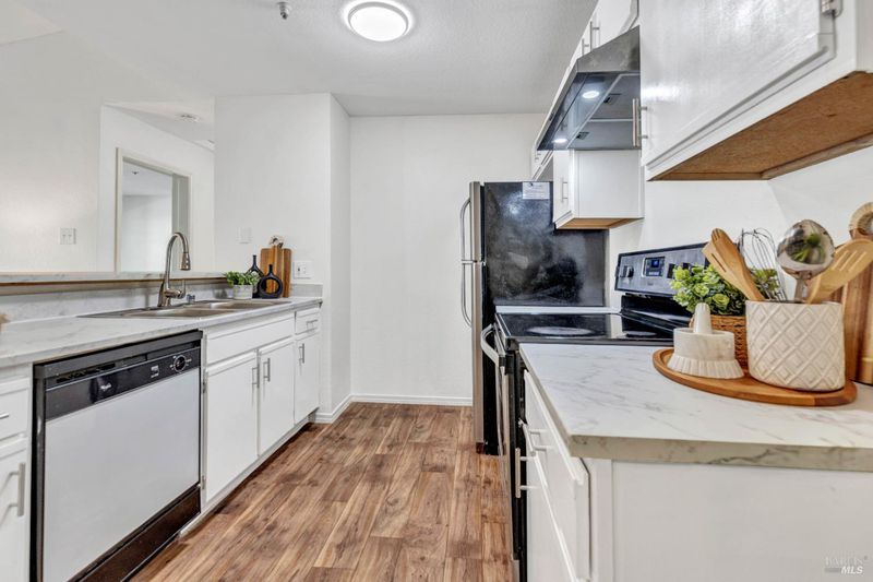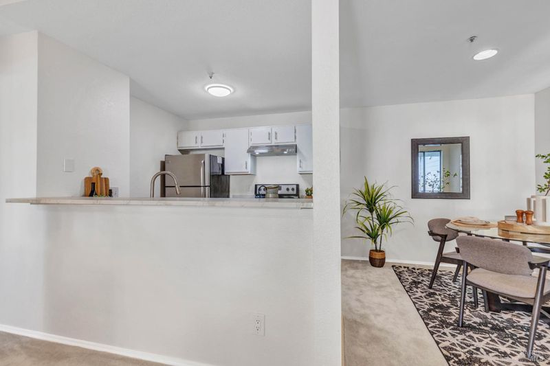 The home features a bright living area with a functional layout that opens to a private balcony, providing a great space to relax or enjoy fresh air. The balcony also includes a convenient storage closet. The kitchen has been freshly updated and connects conveniently to the dining and living areas for an open and practical flow and breakfast bar seating with a formal dining area. Washer and dryer in the unit for ultimate convenience. Community amenities include a swimming pool and on-site fitness center. The unit also comes with a private garage, offering convenient parking and additional storage. Conveniently located in the Glen Cove area of Vallejo with access to nearby parks, waterfront areas, hiking, shopping, dining, and commuter routes including the San Francisco Bay Ferry. Come see this upper-level 1-bedroom, 1-bathroom condo offering approximately 665 square feet today!