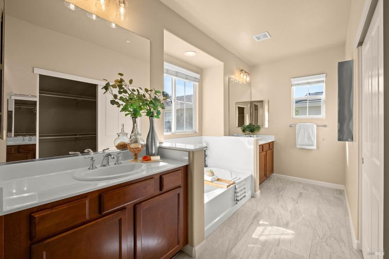 - Double Sinks, Shower Stall(s), Soaking Tub, Walk-In Closet, Window