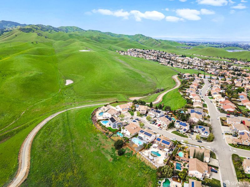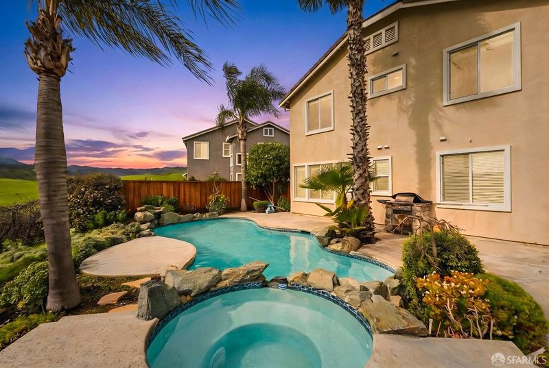 A million-dollar view for under a million! Welcome to a rare opportunity to own one of the largest and most desirable floor plans in the community. Tucked away at the end of a quiet cul-de-sac and backing to breathtaking rolling hills, this contemporary residence offers exceptional privacy and panoramic views stretching toward Mt. Diablo. Designed for both comfort and grandeur, the expansive primary suite is located on the main level, providing everyday convenience. High ceilings create an airy ambiance, while fireplaces add warmth and architectural charm. Enjoy an expansive multifunctional space with a wet bar, complete with a billiard area. An additional flex space provides the potential for a seventh bedroom, private office, or creative studio. One of the rooms has even been enjoyed as a dedicated home theater. The outdoor sanctuary delivers true California living. Step outside into your private resort-style backyard, where an in-ground pool and spa are framed by serene hillside views. Additional highlights include a two-door walk-in closet, double vanities, a laundry room, and a solar energy system for sustainable, efficient living. Lovingly owned and meticulously cared for by the same family for two decades, this home radiates pride of ownership and thoughtful stewardship. Located near a golf course, boat ramp, Contra Costa Regional Park, Kaiser Permanente, restaurants, Costco, and more, this exceptional residence offers everyday convenience! A private escape. An entertainer's dream. A view you'll never outgrow. Welcome home.
