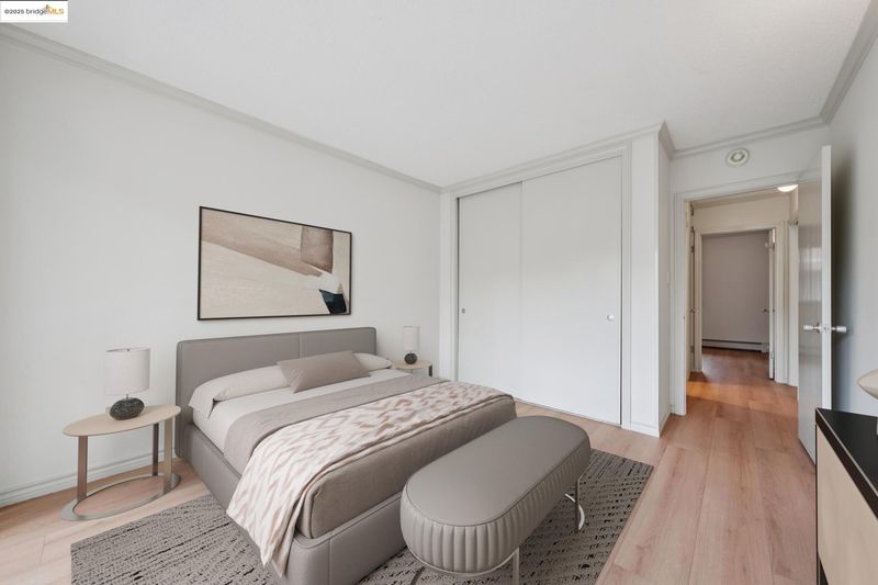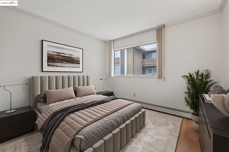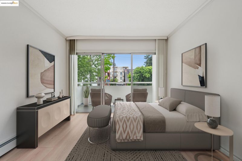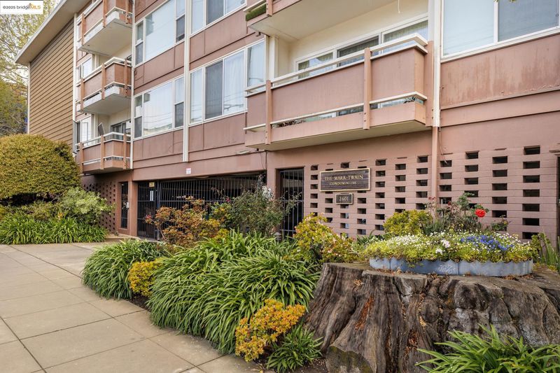 Rarely available, 2 bedroom 1 bath condo in Berkeley’s iconic Mark Twain building, ideally situated between the UC Berkeley campus and the vibrant Elmwood and Rockridge neighborhoods. This spacious light-filled second-floor unit with private north-facing balcony, has new flooring throughout, new kitchen counter, sink and appliances, and an updated bathroom. The free "Bear Walk" evening escort service offers peace of mind for late-night campus commutes.There’s also secure deeded garage parking, a private storage locker, and elevator access in this impeccably maintained, gated building with security cameras. Residents also have access to a landscaped courtyard, on-site laundry, and professional property management. HOA dues cover common hot water, earthquake & hazard insurance, trash, and more. Just a short distance to UC Berkeley, public transit, BART, and the best of Elmwood’s shops, cafes, and theaters. Live comfortably with all the best of Berkeley at your doorstep!