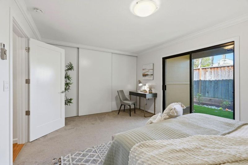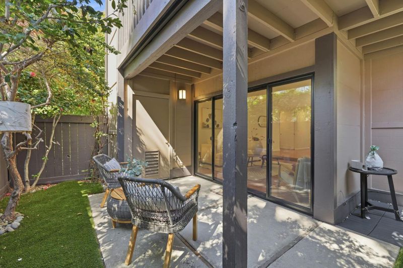 Beautifully remodeled 1st-floor end unit condo featuring rare two private outdoor spaces including a spacious backyard, front patio, and detached garage. A formal entry leads to a bright, functional floor plan filled w/ natural light. The updated kitchen features Shaker cabinetry, quartz countertops, SS appliances, bar seating, & a dining area w/ large windows. The inviting room offers recessed lighting, a contemporary fireplace w/ tiled hearth & mantel, and sliding glass doors opening to a private front patio. Additional highlights include an oversized laundry room w/ full-size washer and dryer, hardwood flooring, and extra storage. The spacious primary suite offers generous closet space and sliding glass doors leading to the cozy backyard, creating a rare outdoor retreat ideal for relaxing or gardening. The updated bathroom includes a shaker vanity with the designer tile shower-over-tub. Located in a well-maintained community w/ mature landscaping and a swimming pool, the property is near San Antonio Center, The Village at San Antonio, and Castro Street dining. Nearby parks include Rengstorff, Shoreline Lake, & Stevens Creek Trail. Easy access to 101, 85, & 237, Central Expressway, Caltrain, and major tech firms including Google, LinkedIn, & Microsoft. Welcome Home.