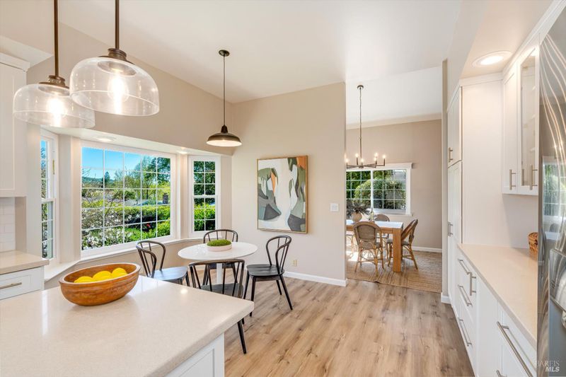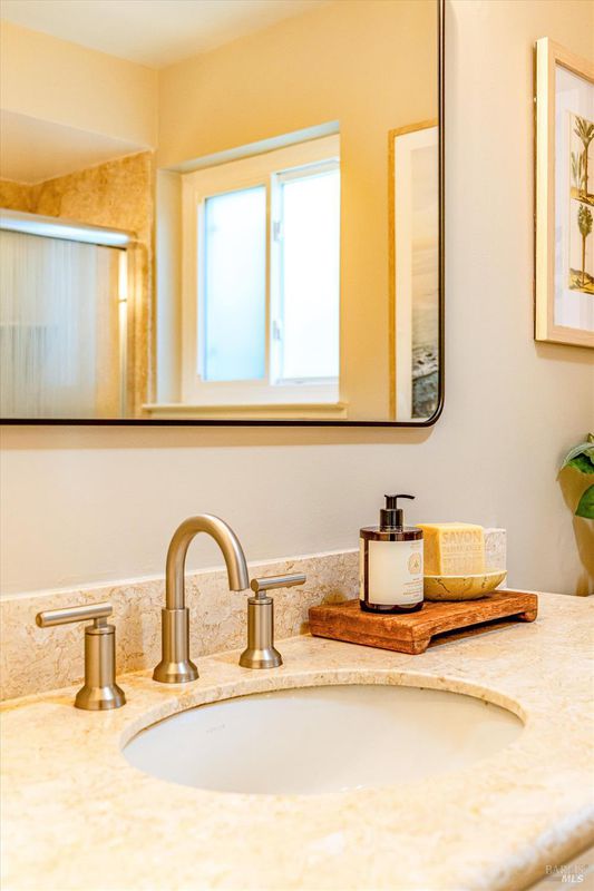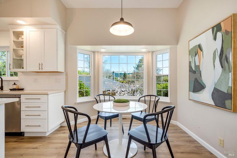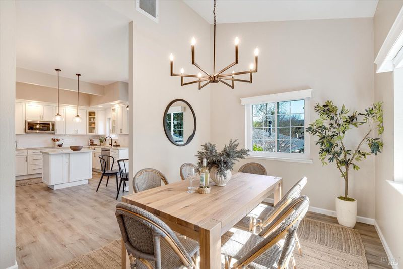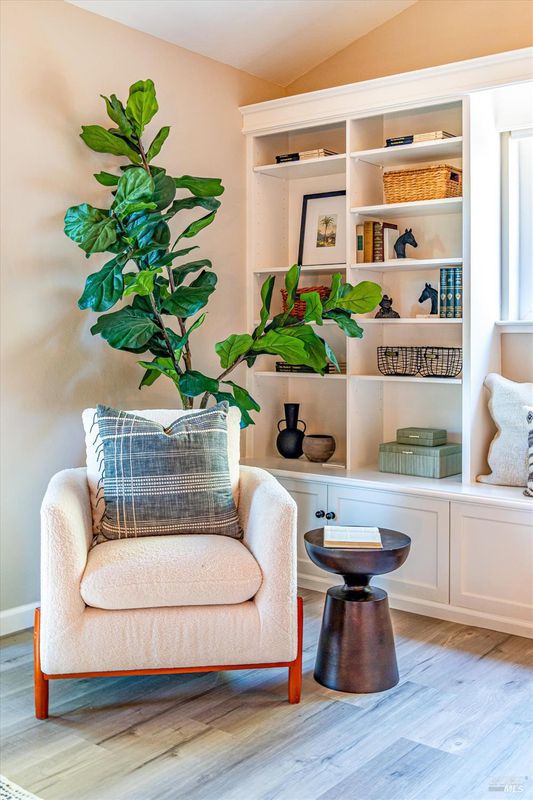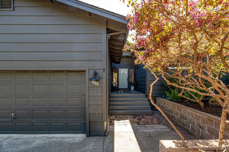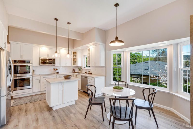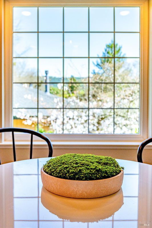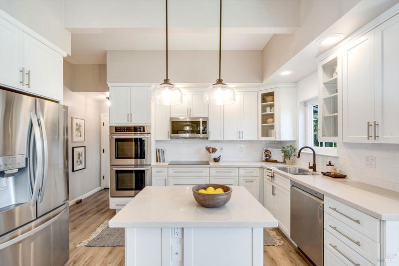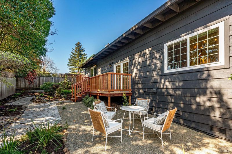 Set in the heart of Sonoma Valley, this beautifully reimagined three-bedroom, two-bath residence captures the essence of refined Wine Country living, where understated elegance meets effortless comfort. Recently refreshed with new exterior paint, curated landscaping, and a thoughtfully remodeled kitchen, the home presents a cohesive, design-forward aesthetic that feels both elevated and inviting. Soaring vaulted ceilings define the main living space, drawing in natural light and creating an airy, expansive atmosphere. The interiors are finished in a clean, timeless palette, allowing the kitchen and baths to feel both modern and enduring, equally suited for quiet mornings or lively gatherings. From the kitchen and dining area, east-facing views stretch across trees and softly rolling hills, welcoming in gentle morning light and a sense of calm connection to the landscape. Just beyond, a newly constructed rear deck extends the living space outdoors, perfect for alfresco dining, evening unwinding, or enjoying Sonoma's golden-hour glow. The primary suite offers a serene retreat, complete with vaulted ceilings, custom built-in bookshelves, direct outdoor access, and a generous walk-in closet; an intentional blend of comfort, scale, and functionality. Two well-appointed guest bedrooms are thoughtfully positioned on the opposite side of the home, offering exceptional privacy. One features custom built-in bookcases, making it an ideal guest room, library, or refined home office. A charming detached studio adds a darling touch ideal for creative pursuits or a private home office. An indoor laundry room and spacious two-car garage add ease to everyday living. A home that lives as beautifully as it looks offering a refined yet relaxed Sonoma Valley lifestyle.