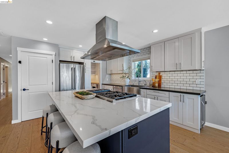 Rebuilt Belmont home blending modern luxury with timeless charm. Completely redesigned with over $700,000 in upgrades, this 4-br, 2-ba home offers 1,950 sq ft of refined living space on a beautifully situated flat lot w/ Bay views. The chef-inspired kitchen features quartz countertops, a generous center island, premium stainless steel appliances, wine fridge, and custom cabinetry. The open layout flows seamlessly to the formal dining and living room with fireplace—brightened by expansive windows, natural lights, and Bay views. The primary suite offers a serene retreat with a private bath. Wide-plank oak floors, designer lighting, and refined finishes create a warm yet contemporary ambiance. Upgrades include electrical, plumbing, gas lines, central HVAC, double-pane windows, owned solar, and EV charger, offering modern efficiency and long-term peace of mind. Enjoy a landscaped backyard oasis w deck, hot tub, BBQ, and level lawn- an ideal setting for relaxed outdoor gatherings. Located near Twin Pines Park, downtown Belmont, award-winning schools, scenic trails, and major commuter routes, freeway entrances, this exceptional home delivers the perfect balance of luxury, comfort, and convenience. A rare opportunity to own a truly turnkey Belmont retreat with style, space, and views.
