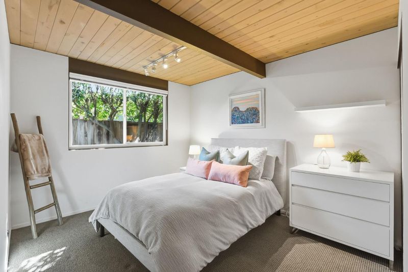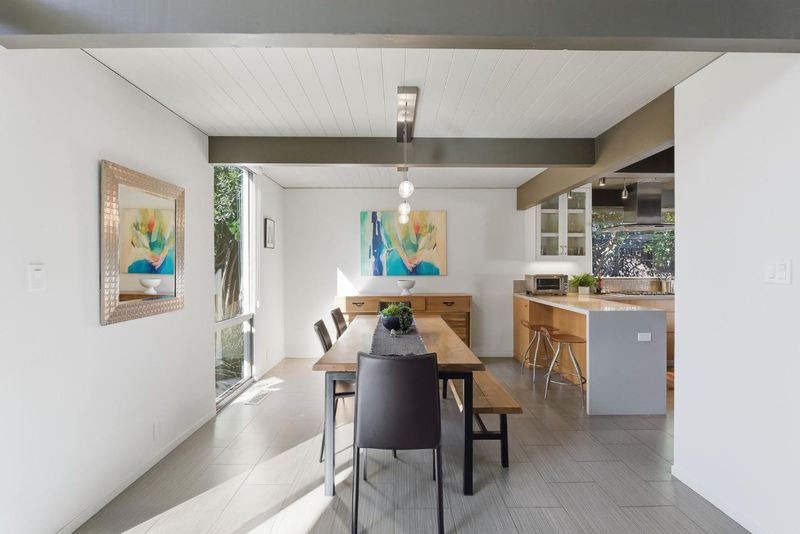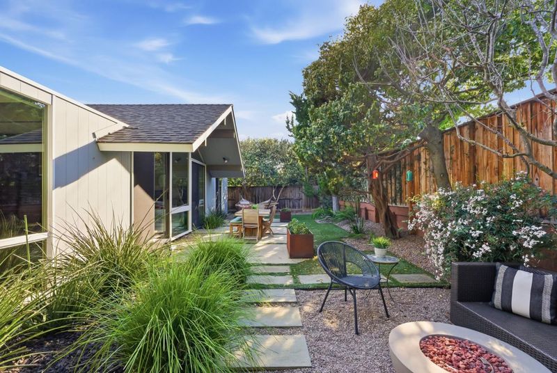 Unique Claude Oakland-designed Eichler blends iconic mid-century architecture with refined modern upgrades. Distinctive Bell Meadows Neighborhood! Signature post-and-beam construction, globe lighting & walls of glass create a bright, open atmosphere, complemented by high-end finishes & contemporary design. Light-filled living, dining & family room spaces features dual see-thru fireplace, skylights, vaulted ceiling & back patio access. Gourmet remodeled kitchen features custom cabinetry, quartz countertops, tile backsplash, butcher block island, gas cooktop, modern lighting & premium stainless appliances. The primary suite serves as a private retreat with direct backyard access & a spa-inspired bath with dual vanity & frameless glass shower with floor-to-ceiling tile. Three additional bedrooms share a beautifully updated hall bath. The low-maintenance yard is designed for entertaining with concrete patio, fire pit & built-in privacy fencing accented by a vertical garden surrounded by lush landscaping. Additional highlights include indoor laundry, oversized two-car garage & storage loft. Centrally located near downtown Mountain View & Blossom Valley Plaza, top-rated schools, & major commute routes. This home offers timeless design and modern comfort in a highly desirable setting.