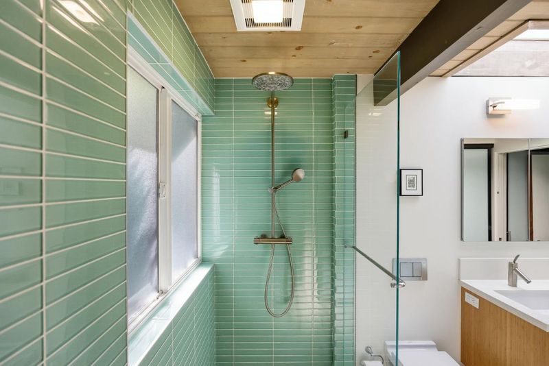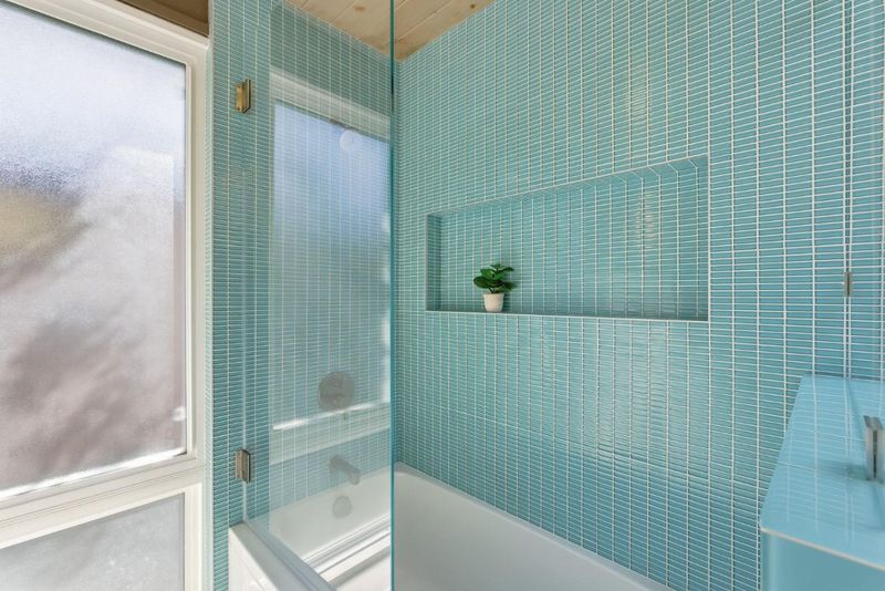 - Double Sinks, Full on Ground Floor, Primary - Stall Shower(s), Shower over Tub - 1, Skylight, Tile, Updated Bath