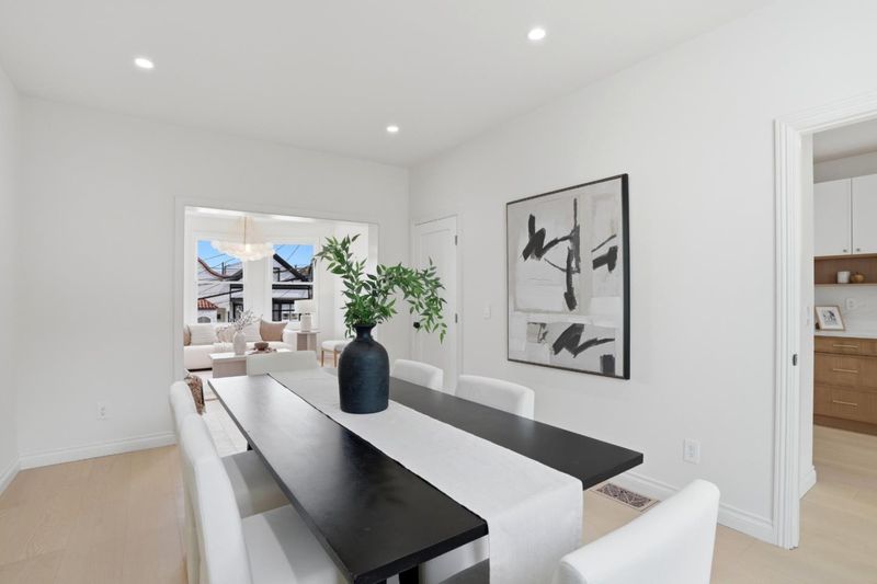 Welcome to 1116 Diamond St, where classic San Francisco charm meets a full modern transformation. This beautifully reimagined 3-bedroom, 1.5-bath home w/ approximately 1,488 sq ft w/ approved plans to expand to a 2,082 sq ft 4BR/2.5BA home blends timeless Victorian character w/ thoughtful upgrades. The home features high ceilings, new oak hardwood floors, smooth Level 5 wall finishes & abundant natural light from skylights. The living room is anchored by a sleek electric fireplace. The designer kitchen was reimagined for everyday living & entertaining, featuring quartz countertops & backsplash, slim shaker cabinetry w/ solid brass hardware & premium appliances including a Thermador refrigerator, Wolf gas cooktop, Bosch wall oven & panel-ready Bosch dishwasher. The layout flows seamlessly into the formal dining area. Major improvements include a new roof, new HVAC w/ central AC, full electrical re-wiring & complete re-piping, providing long-term comfort & peace of mind. Bathrooms have been stylishly remodeled w/ tile and marble finishes, Kohler smart toilets & Hansgrohe shower systems, plus a new half bath on the main level. The finished basement offers laundry, storage & flexible space, while the landscaped backyard features new sod, irrigation, pavers & a concrete patio.