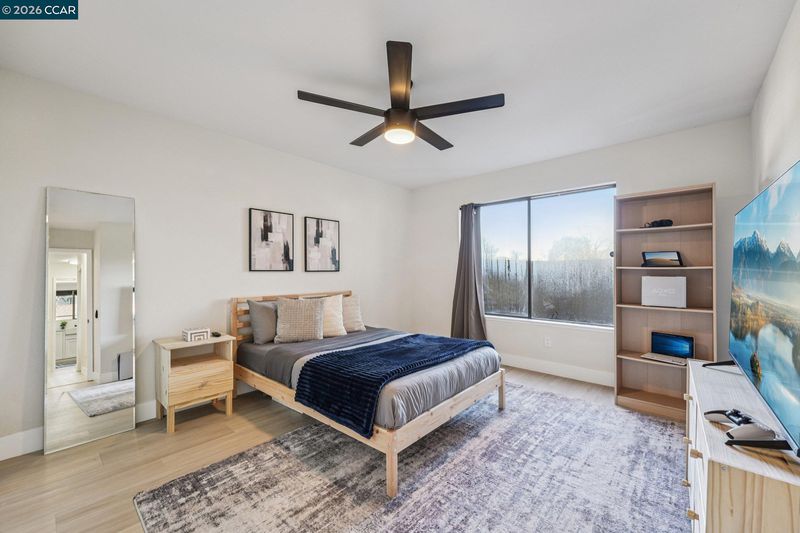 Meet your Marin County reset. Tucked inside Scottsdale Lake in South Novato, this ground-level end unit brings privacy, ease, and zero stairs, which in Marin hits like a lifestyle upgrade. One shared wall, tons of natural light, and an open layout that flexes for work, hosting, or slow mornings with coffee and your dog. The vibe is clean with a full glow up, luxury vinyl plank floors, a wood-burning fireplace, and seamless indoor-outdoor flow to your private patio and fenced yard moment. The kitchen delivers with Quartz counters, a farmhouse sink, sleek finishes, and integrated appliances for that designer look. The primary BR features a walk-in closet, while the BA gives spa energy with dual sinks and a custom-tiled shower. You’ll find generous in-unit storage throughout, plus separate exterior storage for bikes, boards, tools, or your Costco era. In-unit laundry and covered parking complete the convenience. Officially a 1 BR per assessor, but includes a finished bonus room with its own egress and private door, your wild card for office, gym, or guest space. Pool, spa, tennis, trails, Vintage Oaks, and easy access to 101 and 37 complete the lifestyle. Move-in ready, effortlessly cool, and right where you want to be.