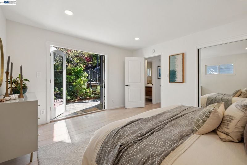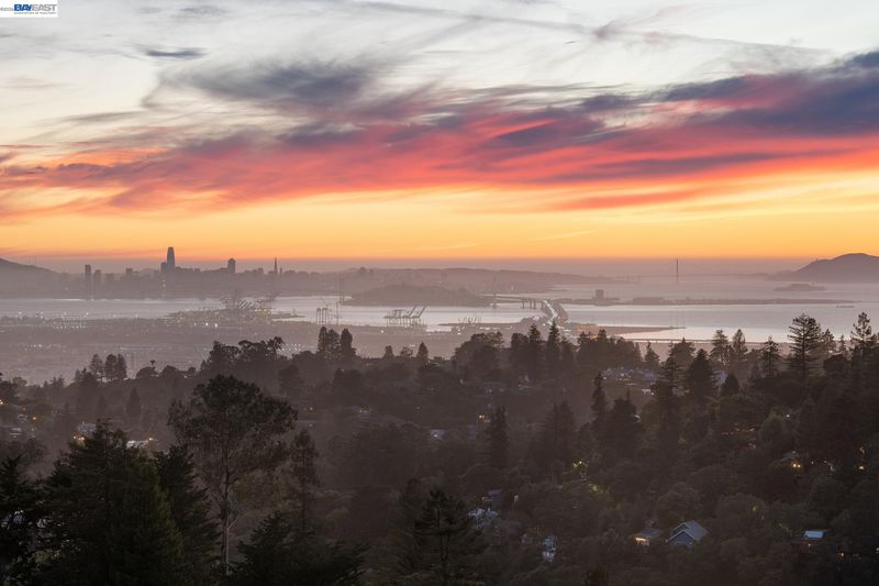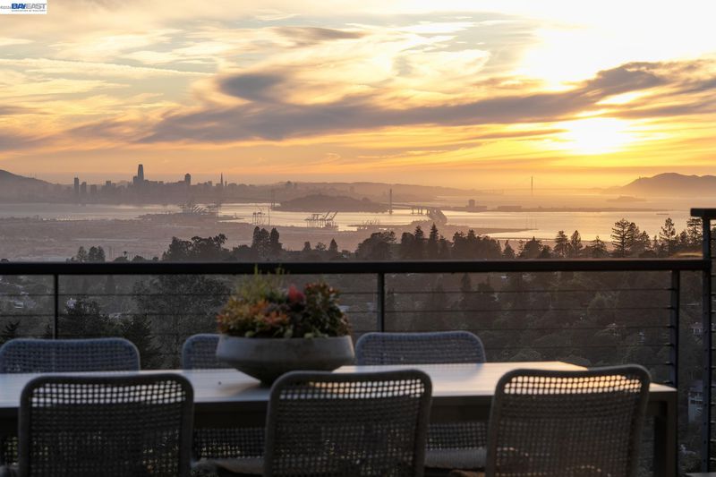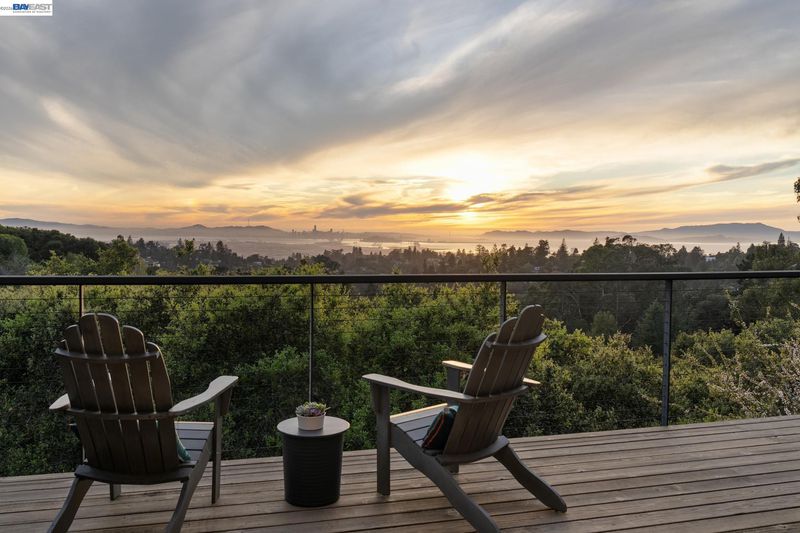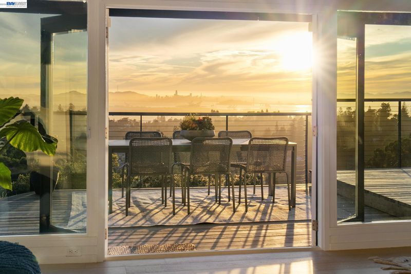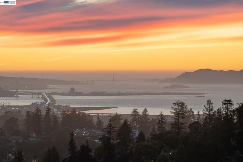 Breathtaking San Francisco, bay and canyon views with outstanding indoor/outdoor living are the backdrop to an exceptional life in this upgraded 3+BD/4BA Montclair home. This sophisticated 2439 SQFT home is light and airy, featuring floor to ceiling windows and la cantina folding glass doors. The sweeping views span from Mount Tam to the Golden Gate Bridge, from San Francisco to Oakland. The home’s dramatic open floorplan features an expansive deck, a beamed wood ceiling, fireplace, dining area, and a modern eat-in kitchen. The main floor is complete with a full bath and sunny bedroom with French doors onto a front patio surrounded by lush landscaping. Downstairs find a laundry room, full bath, and two more bedrooms, including a luxurious primary suite. The primary bedroom features a custom walk-in closet, chic ensuite bath with wet room, and private deck with spectacular views. Unwind in the hot tub admiring the entire SF Bay. This level also connects to a new full bath and bonus room with exterior access, ready as an office, exercise space, or playroom. A 2-car garage and ample storage offer convenience. Enjoy close proximity to Montclair village, public/private schools, and miles of trails to explore in the East Bay parks.
